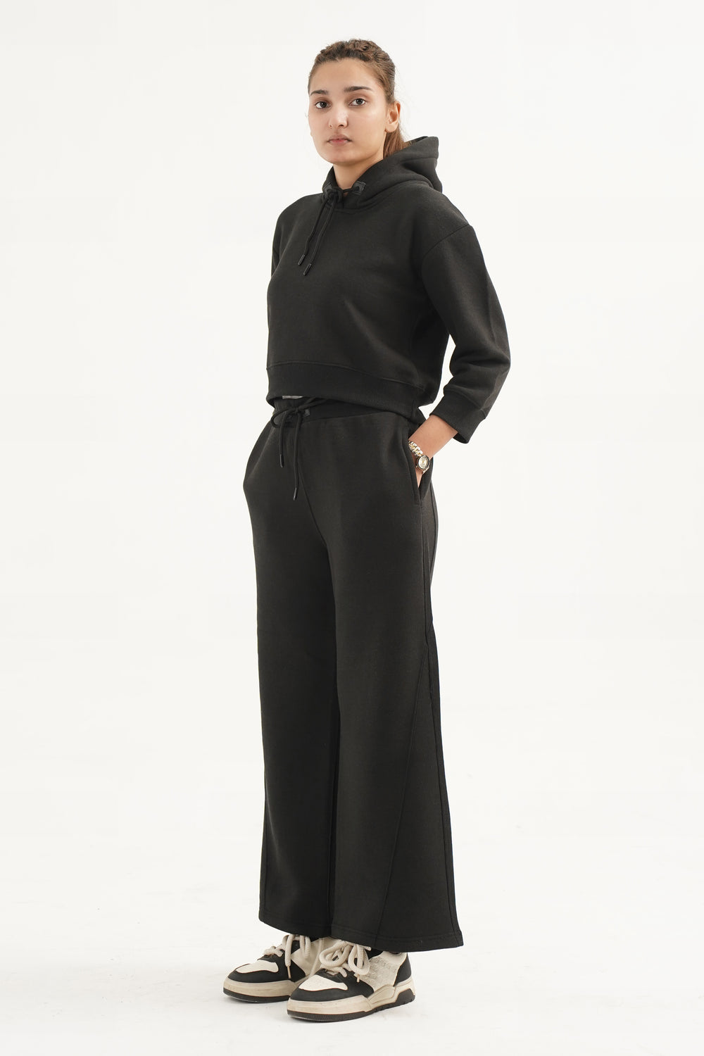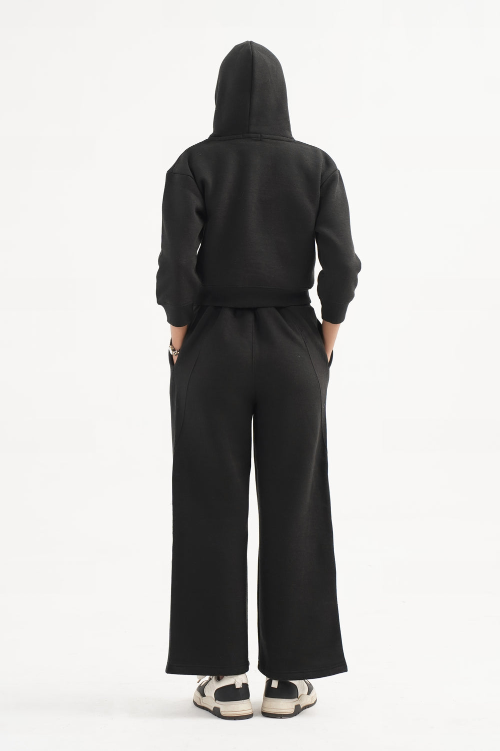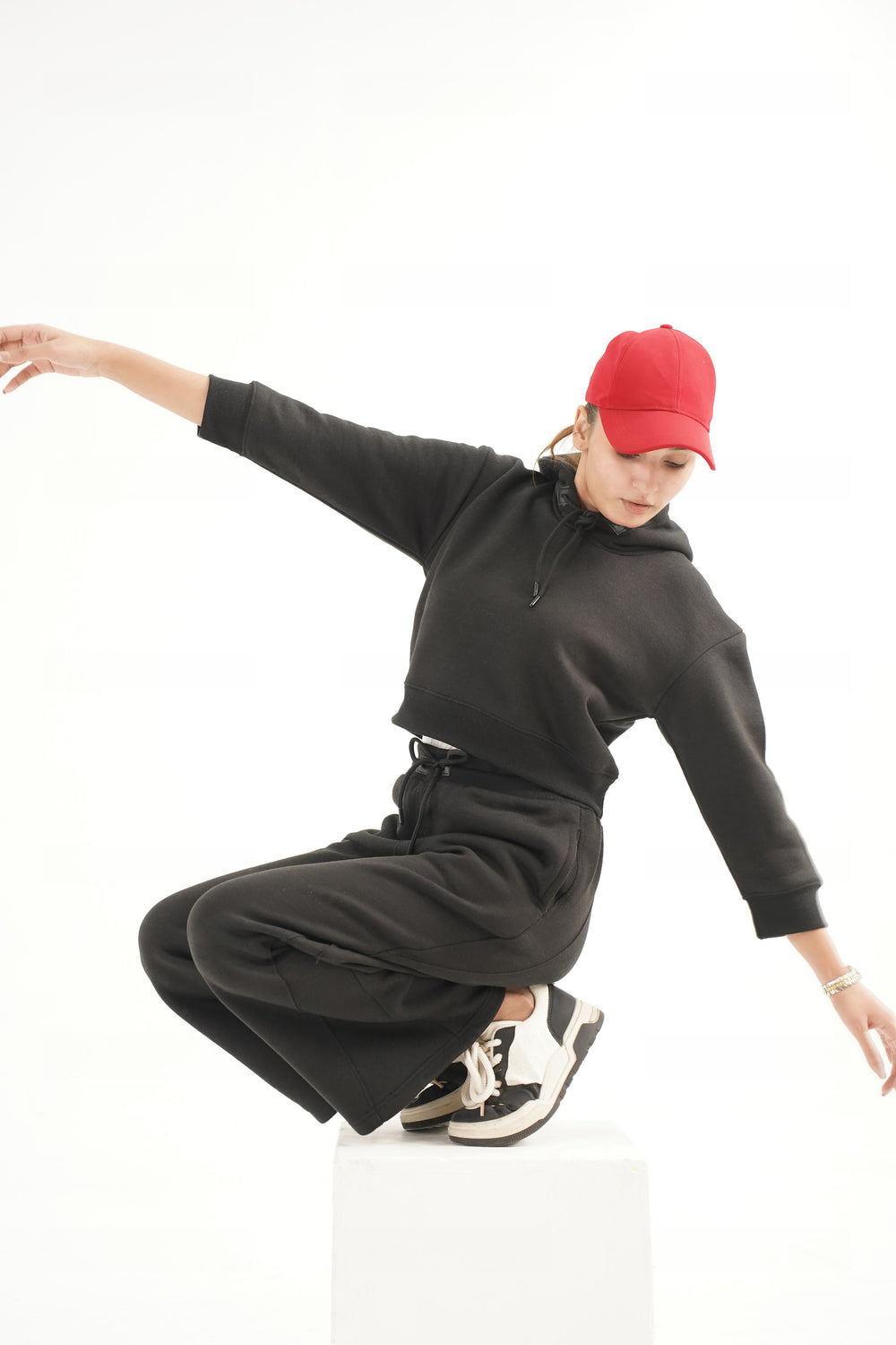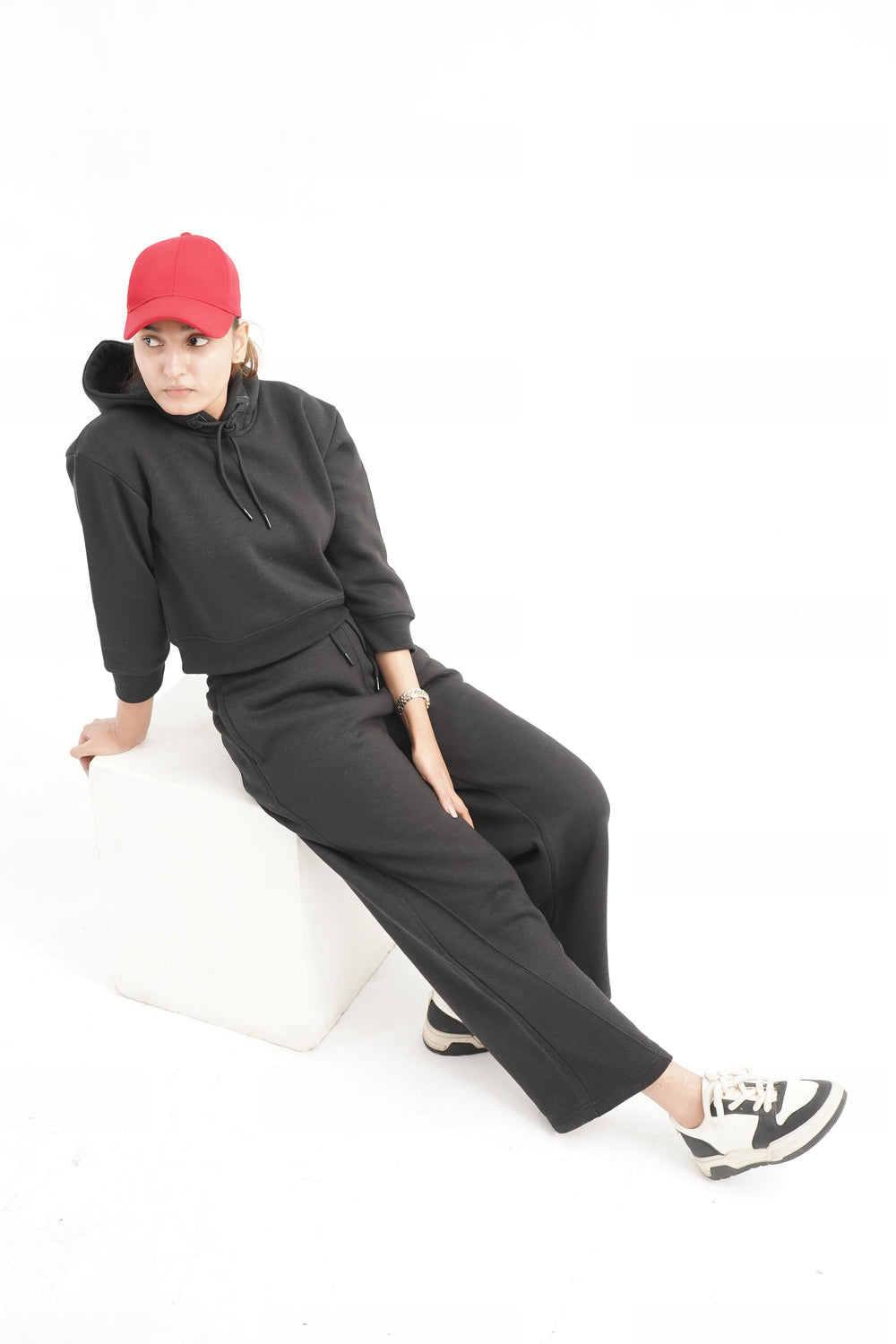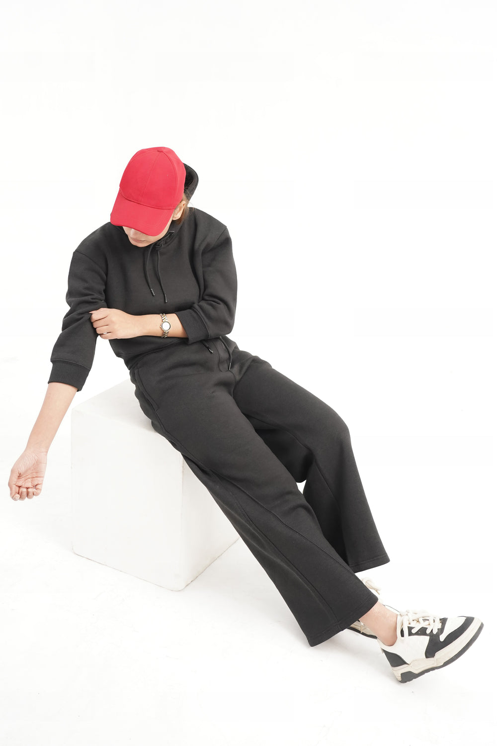 The Midnight Lounge Set is MAALY's elevated uniform. Engineered for maximum volume and controlled drape, this Dark Black co-ord features a cropped ¾ sleeve top and high-rise wide-leg pants. It's premium comfort, refined for the street.